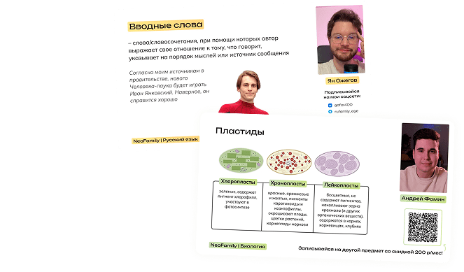 NeoFamily это просто лучшее, что случилось со мной за этот учебный год, только благодаря Юлиану я смогла не просто заучивать материал, но и думать, а это самое главное! Атмосфера на вебинарах-это просто любовь, а домашки всегда очень удобно и приятно было делать. Ну и мой куратор Света Поддерживала и отвечала на любой вопрос, по ее рекомендации взяла интенсив и точно не пожалела!! Огромное спасибо за мой отличный результат-93 балла, я счастлива!!)